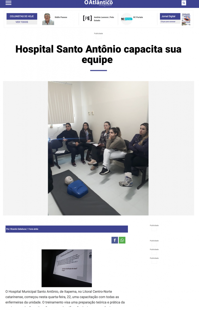 O Hospital Municipal Santo Antônio, de Itapema, no Litoral Centro-Norte catarinense, começou nesta quarta-feira, 22, uma capacitação com todas as enfermeiras da unidade. O treinamento visa […]