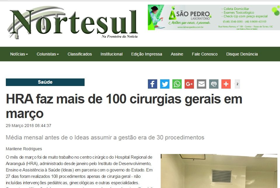 HRA faz mais de 100 cirurgias gerais em março Fonte: http://www.jornalnortesul.com.br/sa%C3%BAde/hra-faz-mais-de-100-cirurgias-gerais-em-mar%C3%A7o-1.2057419