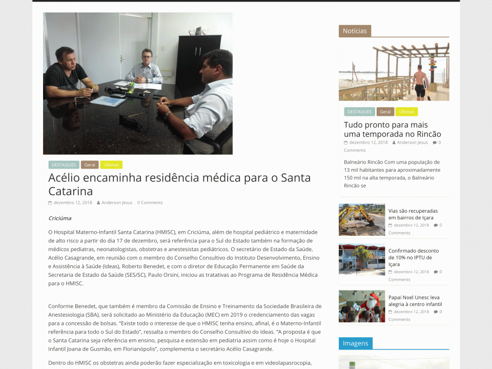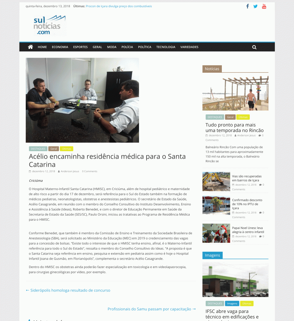 O portal sulnoticias.com destaca a iniciativa do secretário de saúde de Santa Catarina, Acélio Casagrande, de encaminhar alunos de resiência médica para o Hospital Materno Infantil […]