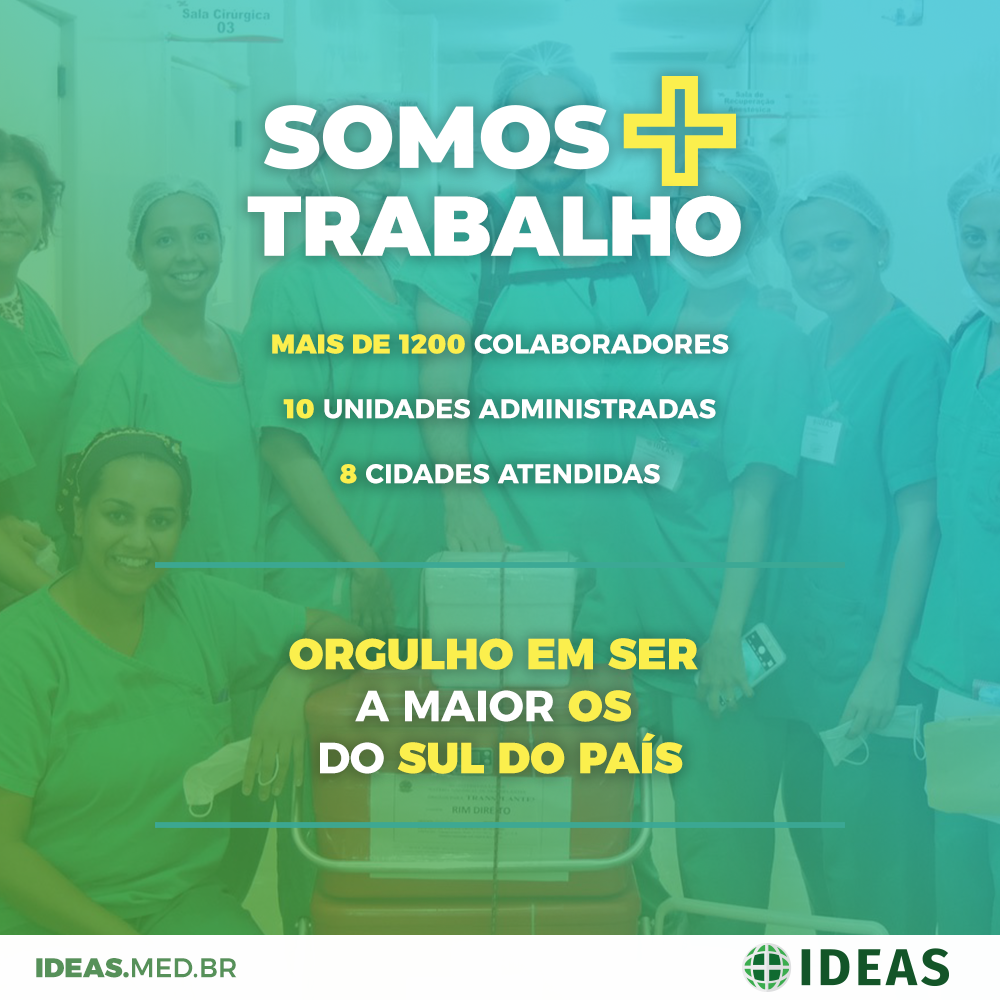 Dia do Trabalho 1 de maio de 2018 Compartilhar0 Artigos Relacionados13 de outubro de 2025IDEAS assume a gestão do Complexo Hospitalar Leste, em Manaus (AM)Leia mais1 de outubro de 2025IDEAS assume serviços da rede primária de saúde de Aracaju (SE)Leia mais18 de julho de 2025Hospital Municipal de Araucária, no Paraná, faz primeira captação de órgãosLeia mais