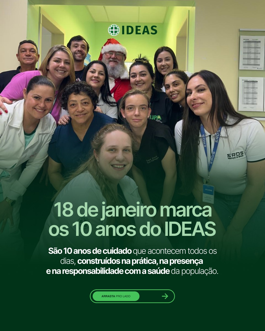 O Instituto de Desenvolvimento, Ensino e Assistência à Saúde (IDEAS) completa neste domingo, dia 18 de janeiro, 10 anos de fundação – uma década de geração de empregos e fortalecimento da saúde pública por meio do SUS.